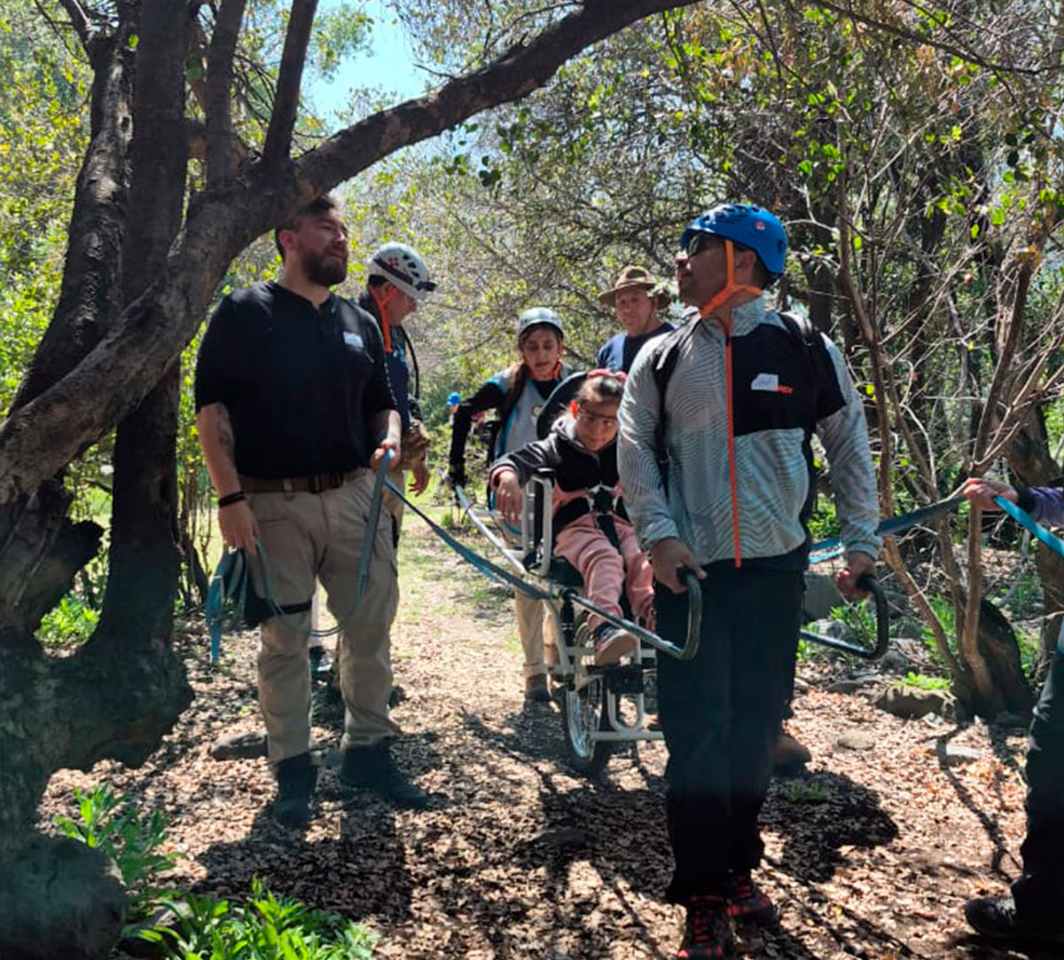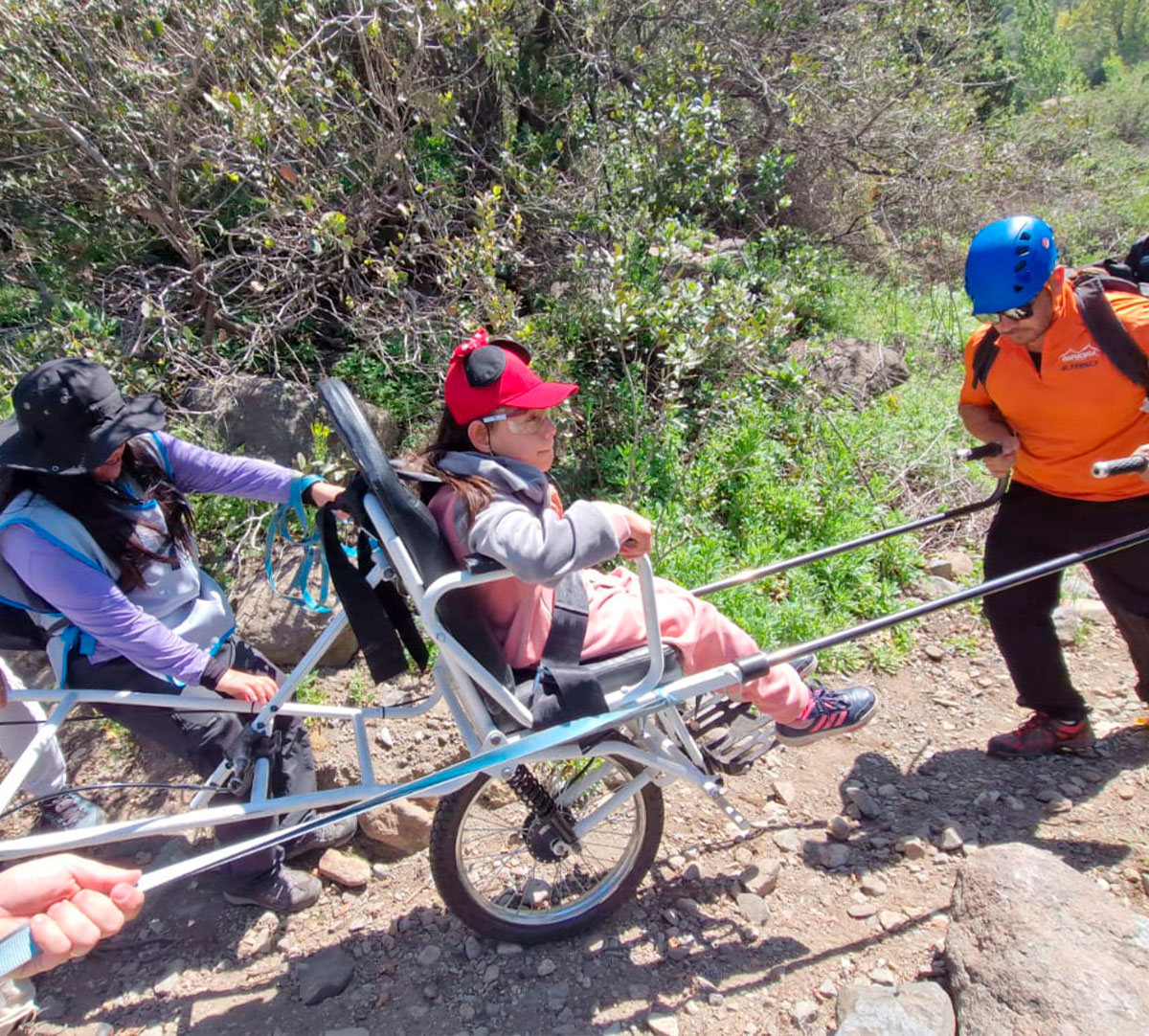 Esta iniciativa nace de la Fundación Río Montaña Chile , con la idea de brindar una opción inclusiva para que personas en situación de discapacidad motriz puedan disfrutar de paseos en la montaña junto a su familia.